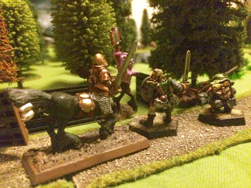 | Gunther, on the other hand, was just getting into his stride. Not only had he dealt with the two chaos hounds that had appeared, slobbering and chomping, out of the woods but he then dealt with one of the Centaurs that charged out shortly afterwards. His Dwarven companion did his best to make use of his skills and snuck along the edge of the wood hoping not to get noticed. |