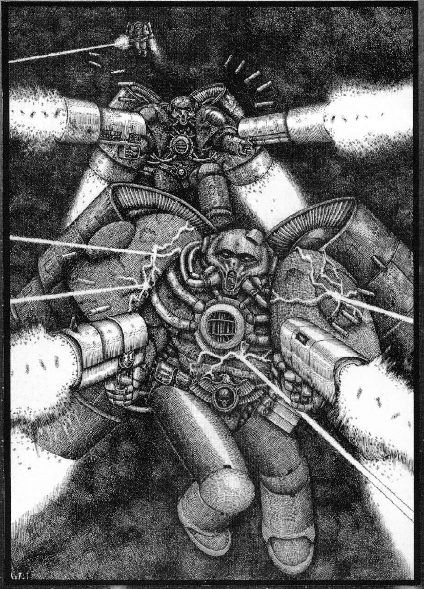Once you make that connection you instantly jump to the most infamous pic in the book. The two grumpy looking 'marines' sitting in a grotty bar. Are they just Human's in power armour? Are they Renegade marines? Are they mercenaries?